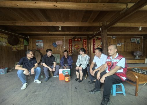 蒙蒙细雨,浓浓温暖,慰问人员不辞辛苦,行走在乡间四通八达的水泥道路上,亲自将这一份份满载深情关怀与真挚祝福的慰问品送到帮扶户家中。此外,这次慰问帮扶活动慰问组采用分组的方式,分别在村上屯、中屯、下屯开展入户慰问,减少人员聚集,更好地服务帮助帮扶户。每到一户,慰问组的成员都与帮扶户围坐在一起,面对面沟通,心贴心交流,仔细询问他们的日常生活情况和身体健康状况,倾听他们的生活需求,询问有关帮扶政策的落实情况等。收到慰问品的帮扶户们脸上都洋溢着幸福的笑容,感激之情溢于言表,“也祝你们中秋快乐”,“谢谢你们的关心”,“节日也不忘来看我们,还送了礼品给我们”,而一些只会说苗语的村民也微笑挥手示意,都在向慰问组的成员们表示真挚的感谢。