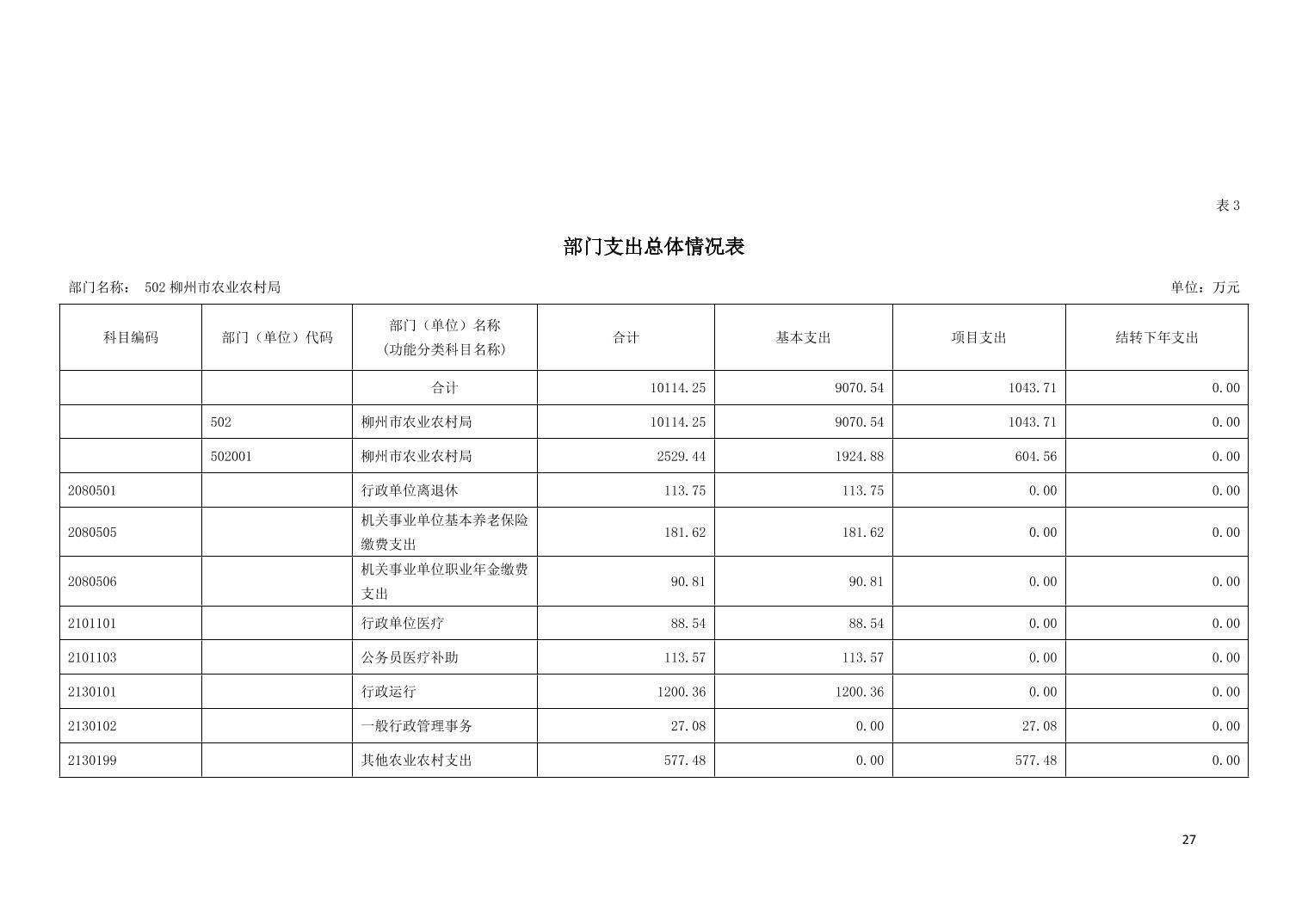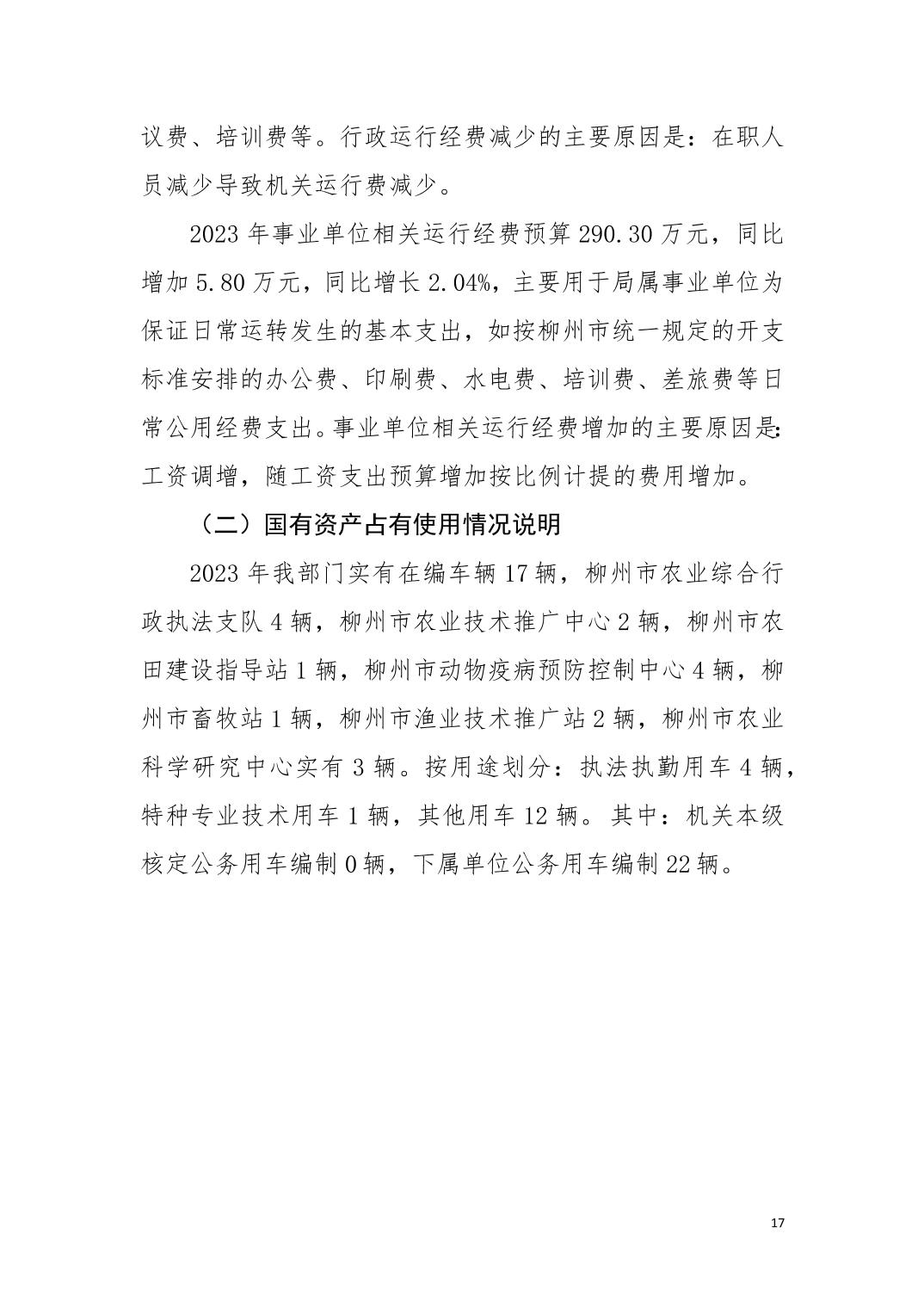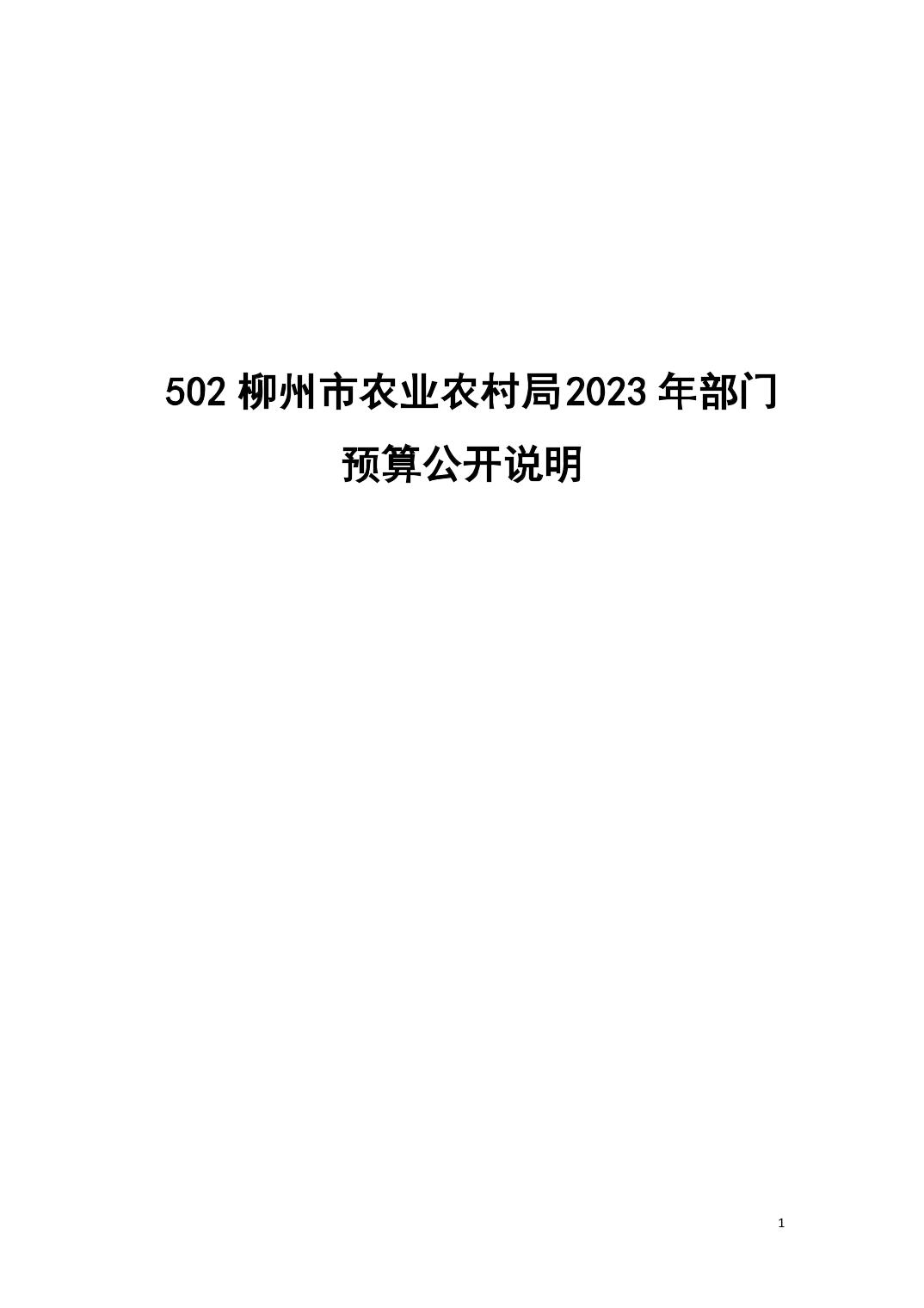 502柳州市农业农村局2023年部门预算公开说明