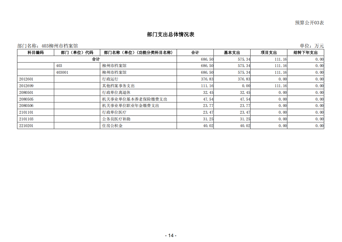 403柳州市档案馆2026年部门预算公开说明